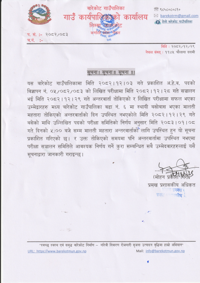 अन्तरवार्ता परीक्षामा उपस्थित हुने सम्बन्धी सूचना।