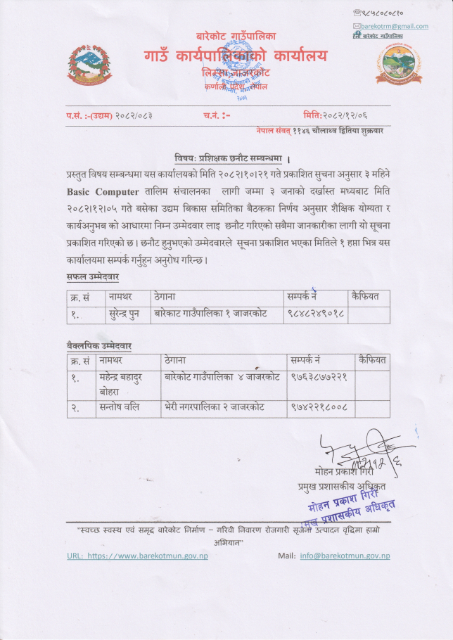 प्रशिक्षक र प्रशिक्षार्थी छनोट गरिने सम्बन्धी जरुरी सूचना।