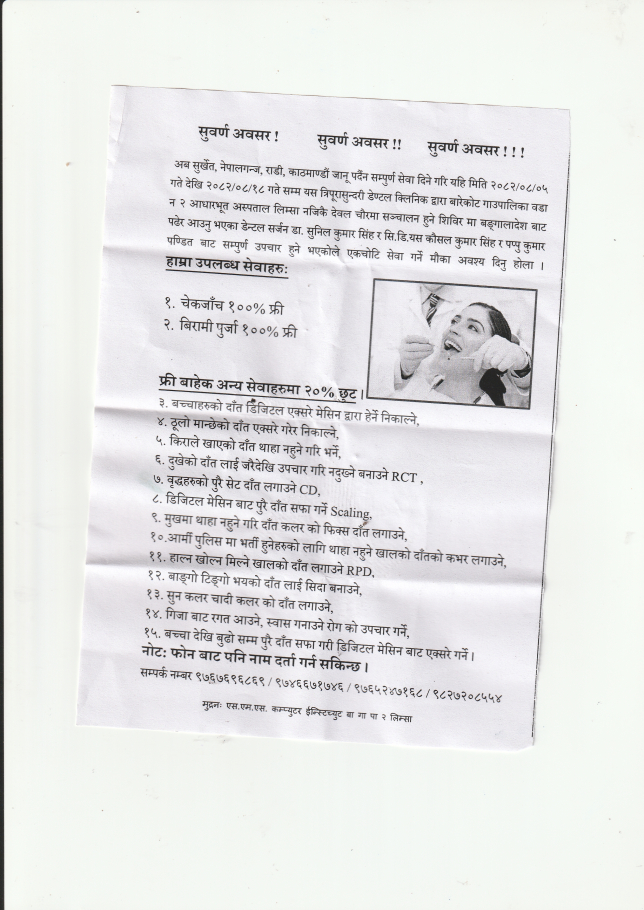दन्त सिविर बस्ने सम्बन्धी अत्यन्त जरुरी सूचना।