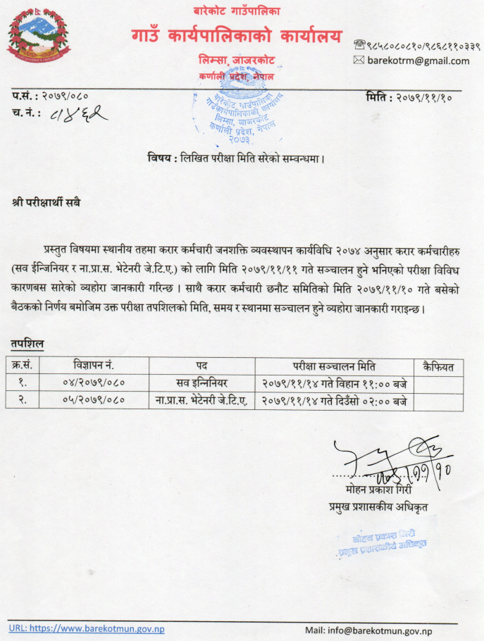 परीक्षा मिति सरेको सम्वन्धी सूचना ।