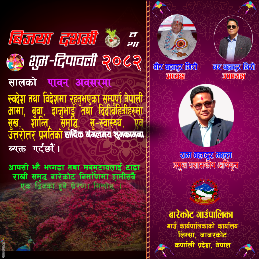 विजया दशमी तथा शुभ दिपावली २०८२ को हार्दिक मंगलमय शुभकामना।